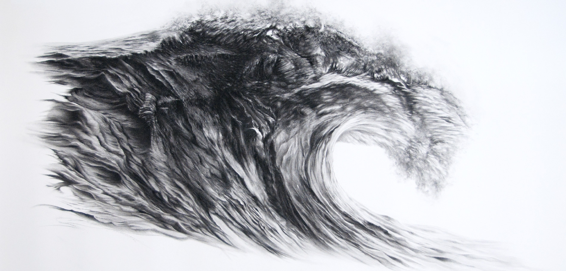 Kylie’s Right was commissioned by our client as a surprise gift for his wife in celebration of a significant birthday. Kylie is a keen surfer, and we were asked to produce a large-scale charcoal drawing of a wave, with two stipulations. Firstly, that the image be unique and reflected the kind of waves we have in Victoria and secondly, in a nod to Kylie’s preferred direction when surfing, that the wave be shown breaking right. The brief also contained an inherent artistic challenge. Charcoal is an abrasive medium, and we relished the opportunity to render a dynamic liquid form in what is essentially dust.